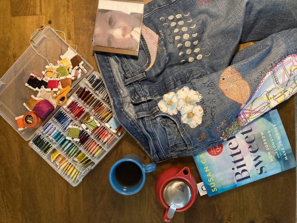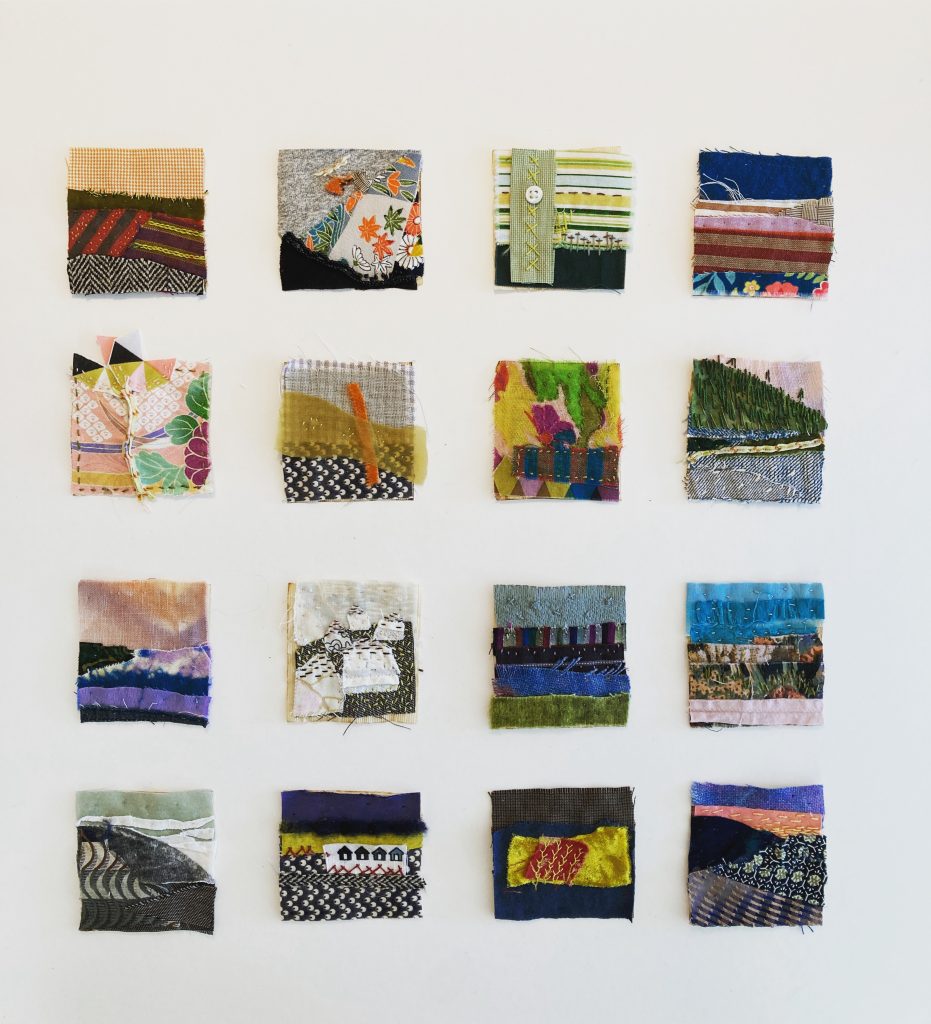 Theresa Shaw is a fibre artist who uses a mix of new, vintage and repurposed textiles to create unique art pieces, from large format wall hangings to tiny teabag compositions. She uses stitching to embellish, repair and transform everyday materials.