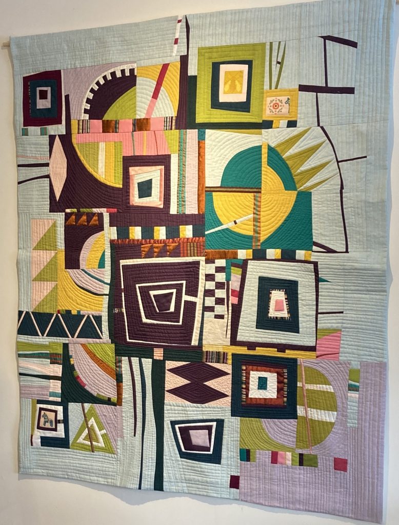 Theresa has been a sewist all her life, and turned to quilting in 2012 as a means of storytelling and healing. Her fibre art gives voice to feelings of loss and renewal, and the search for home and belonging.